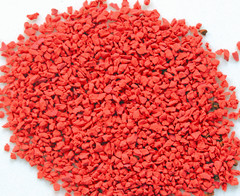 具有顏色柔和和彈性高等特點(diǎn),摻入塑膠場地中,能防止刺眼光線的反射。