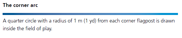 在比賽場地內(nèi),以每個(gè)角旗桿為圓心,畫一個(gè)半徑為1米(1碼)的四分之一圓。