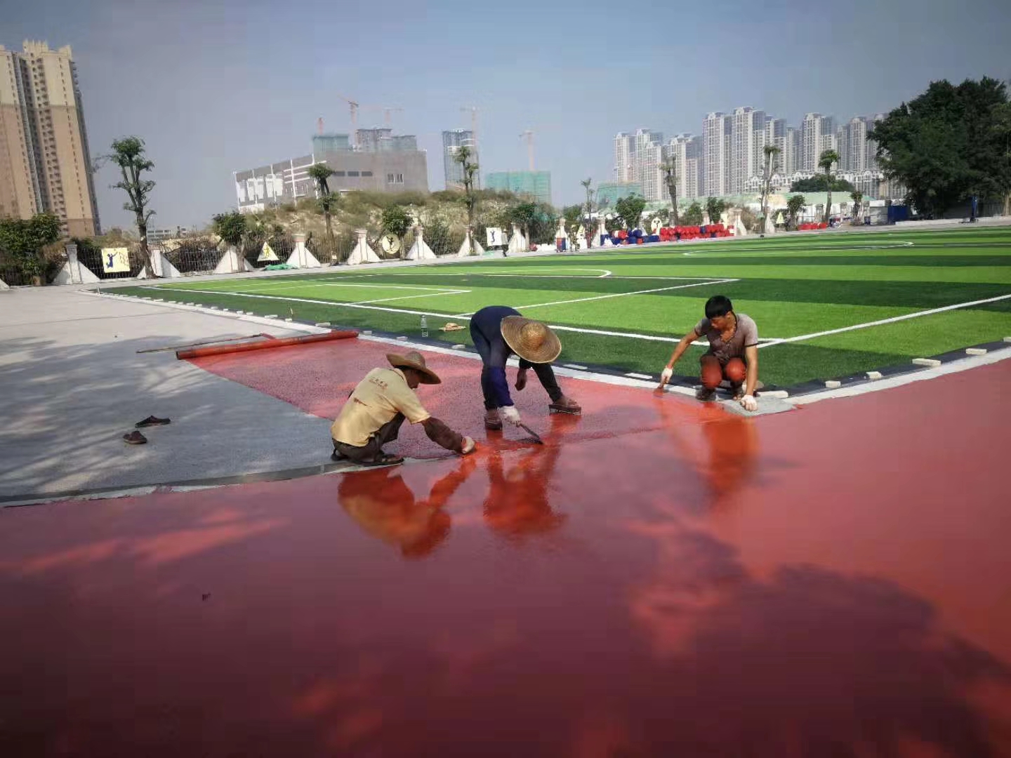 優(yōu)異耐候性:在常規(guī)氣候條件下,具有良好的耐酸雨、耐堿、抗紫外線,抗霉菌性能,在潮濕條件下也能滿足專業(yè)比賽所需的抗滑性能,即使在惡劣的氣候條件下(如低溫、高原氣候、高紫外線地區(qū)等),同樣具有優(yōu)異運(yùn)動(dòng)性能表現(xiàn)。