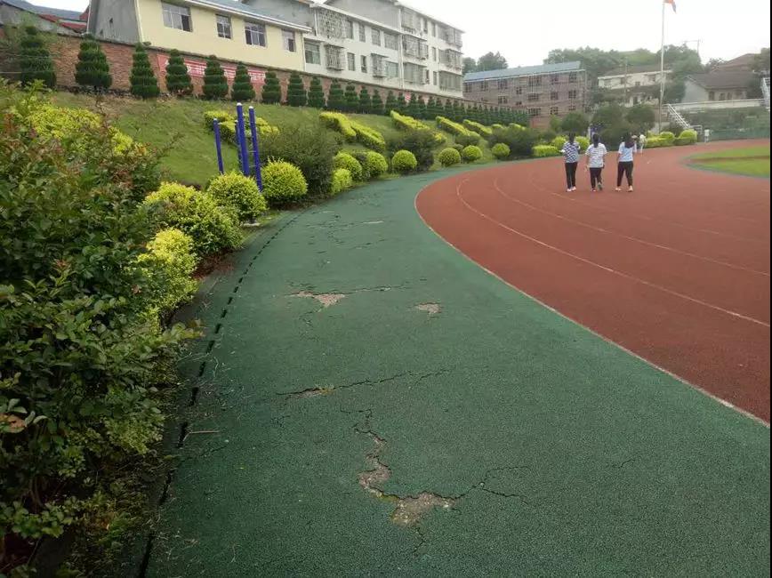 某學校塑膠運動場建成投入使用,由于多種原因目前出現大面積損壞、勘察之后分別為: